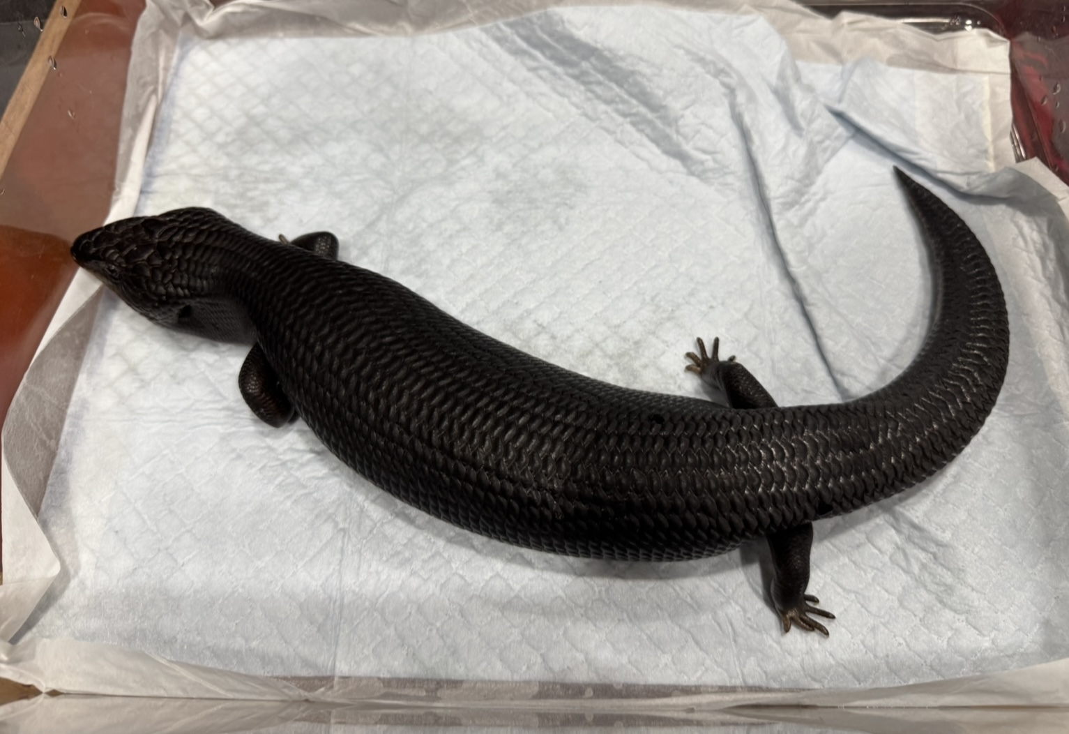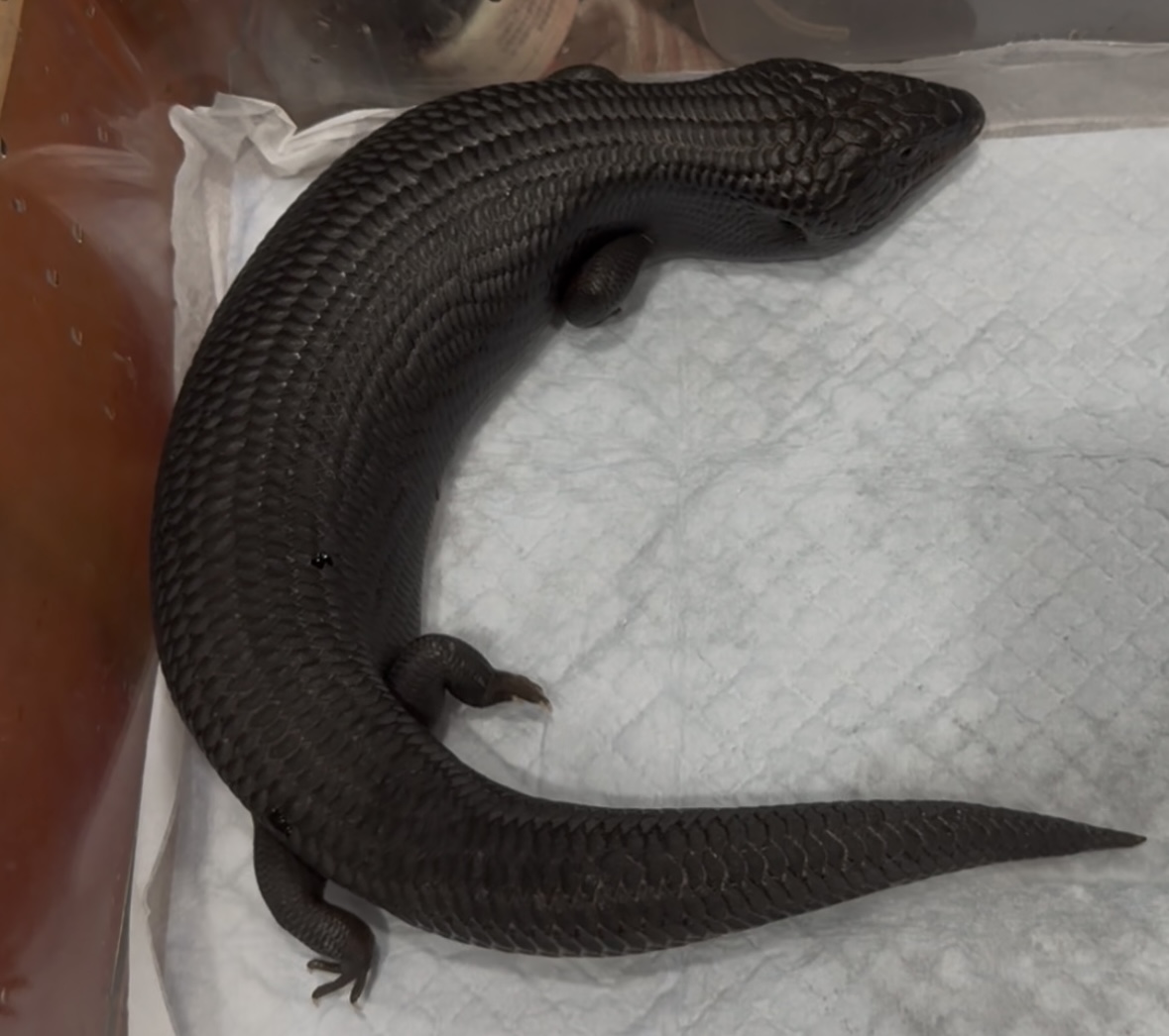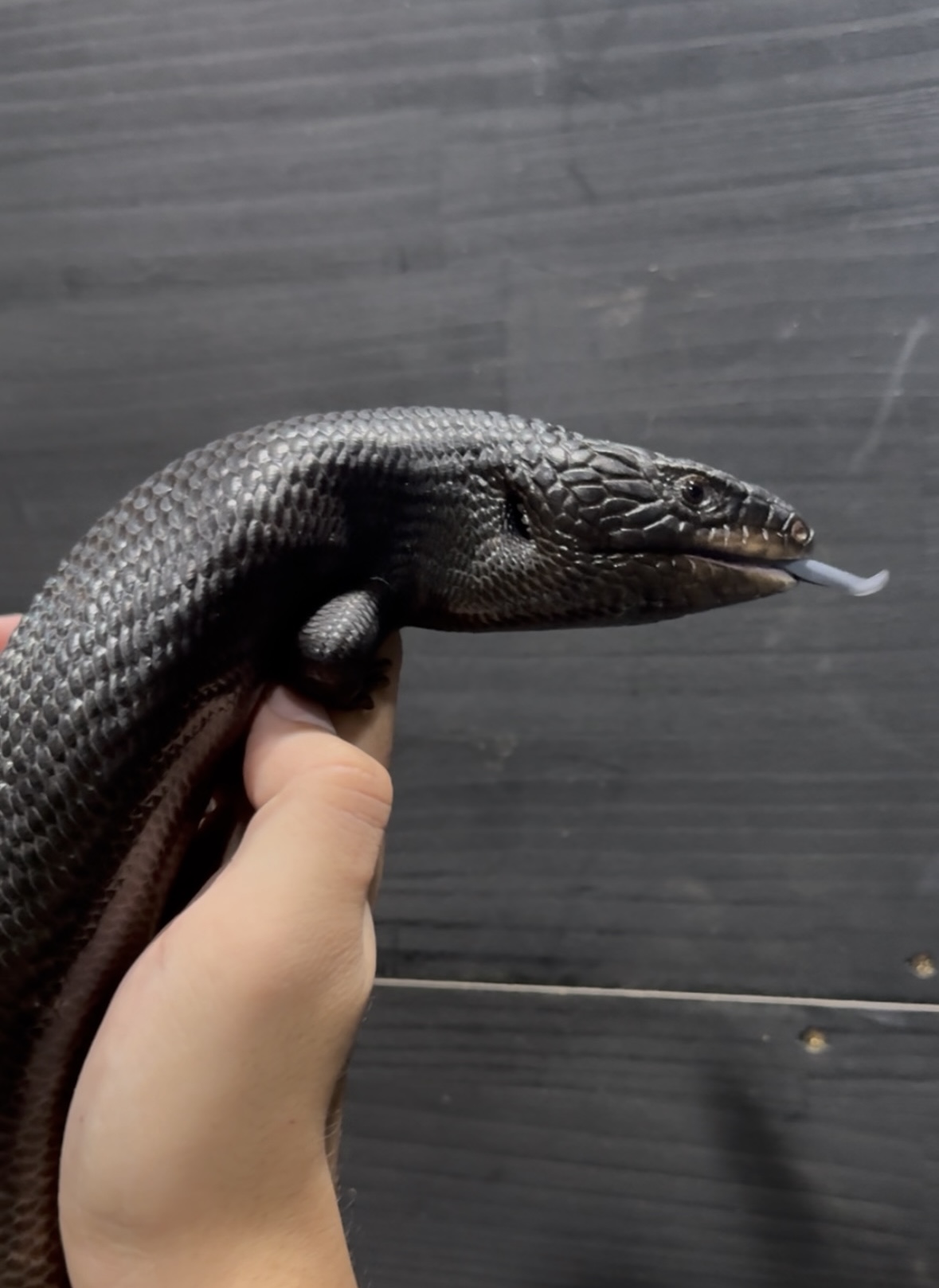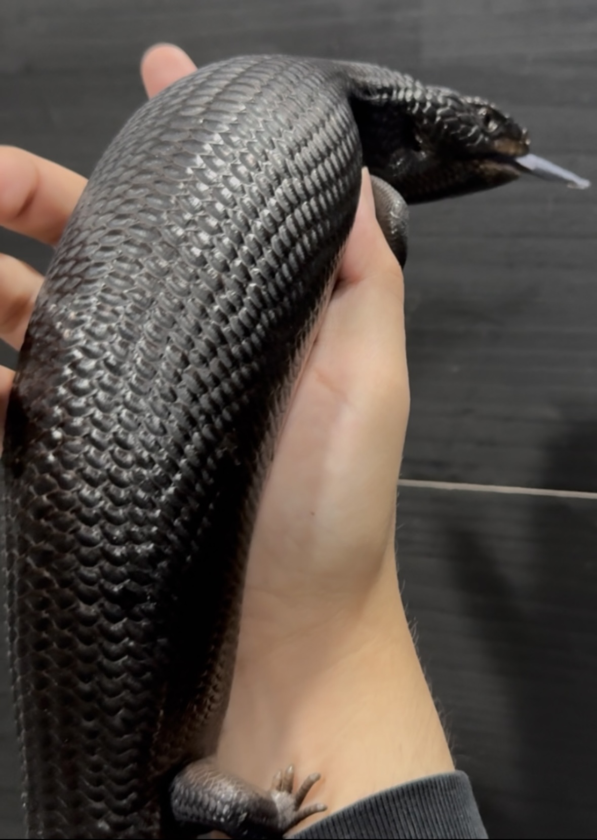 ヒガシアオジタトカゲのメラニスティック個体 漆黒のアオジタトカゲです つい自分が欲しく仕入れました。 実物は写真の数倍カッコイイです メラニスティック個体は腰が曲がっている個体をよく見ますが今回の個体はフル完品になります。 そして恐らく︎︎ ♀になります。 激レアですので、次回入荷はあまり期待できません…